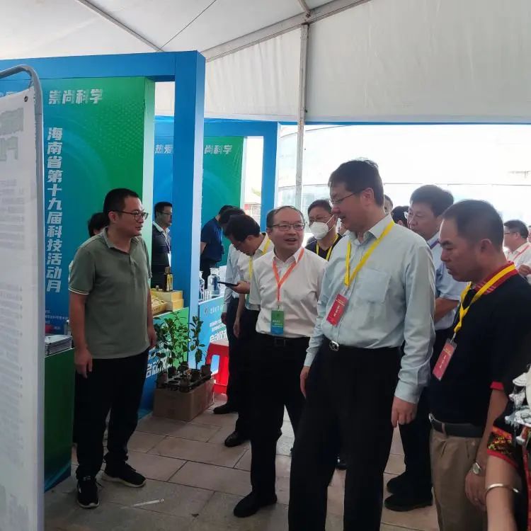 陈金辉副教授向省政协副主席陈马林、省科技厅党组书记李劲松介绍海南油茶产业发展情况。