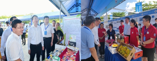 顾刚副省长,海南省农业农村厅孙法军副厅长等人员认真询问和聆听了每个单位展位成果与技术,并进行了深入的沟通交流,对成人网 的热带设施甜瓜产业提质升级科技小院的模式与发展,农业机械化新技术与装备,林下种植魔芋助农增收等科研成果给予高度评价和肯定。