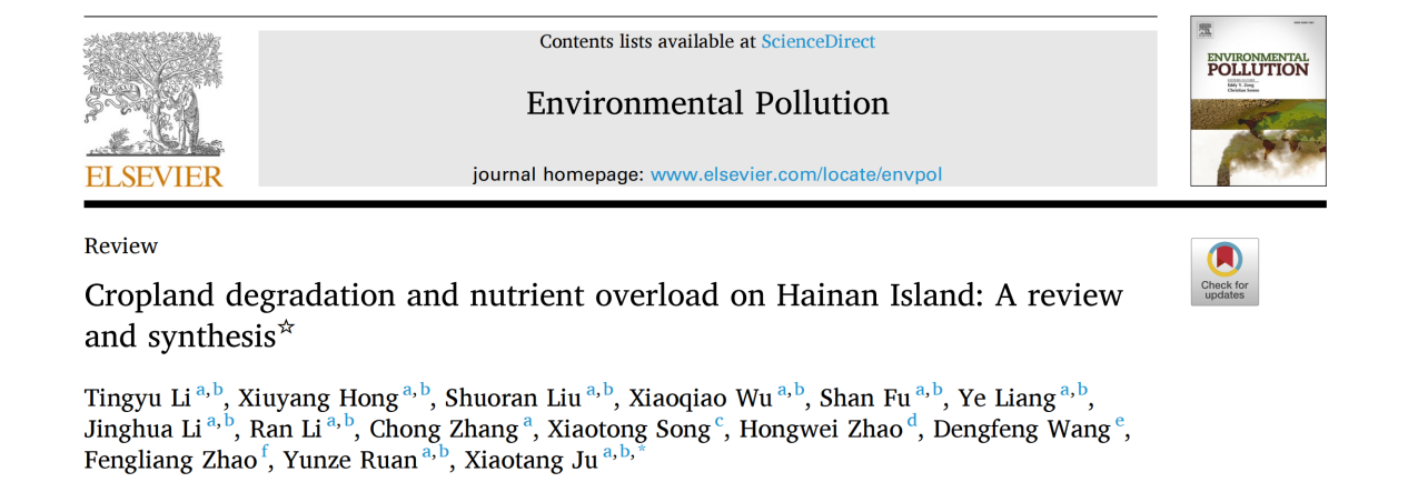 为第一单位,热带耕地养分资源循环利用与质量保育团队李婷玉副研究员为第一作者,发表了题为“Cropland degradation and nutrient overload on Hainan Island: A review and synthesis”《海南岛农田退化与养分过量投入:综述与综合》的综述论文。
