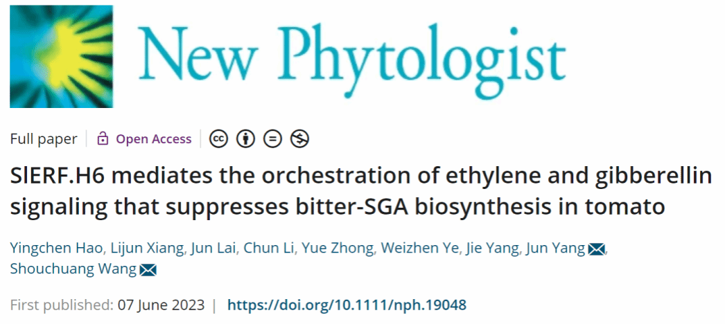 王守创团队在New Phytologist(中科院一区,影响因子10.3)发表题为“SlERF.H6 mediates the orchestration of ethylene and gibberellin signaling that suppresses bitter-SGA biosynthesis in tomato”的研究论文,成人网