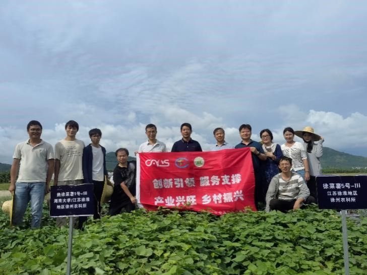 国家甘薯产业技术体系副首席曹清河研究员、徐州市农科院刘明钟院长、钮福祥研究员及山东金海种业首席品牌官邓秀峰总经理到海南三亚崖州湾考察指导工作。热带特色蔬菜产业技术创新与服务团队负责人、菜用甘薯岗岗位科学家朱国鹏教授及团队成员带领专家先后考察了菜用甘薯联合鉴定平台海南点试验进展情况,并走访了崖州湾种子实验室、生物育种国家重点实验室等。