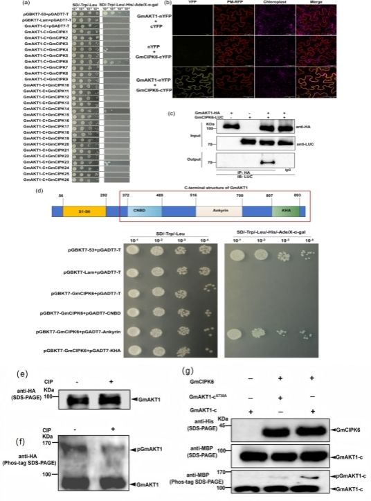 2. 蛋白激酶GmCIPK6相互作用并磷酸化修饰GmAKT1