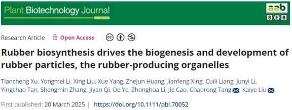 唐朝荣研究员领衔的产胶生物学实验室在Plant Biotechnology Journal期刊(IF:11.2,中科院1区TOP)发表最新研究成果 “Rubber biosynthesis drives the biogenesis and development of rubber particles, the rubber‐producing organelles” ,该研究在橡胶草中揭示了产胶植物橡胶粒子起始和发育的分子机制,为阐明天然橡胶生物合成机制和培育高产橡胶草新种质奠定了基础。