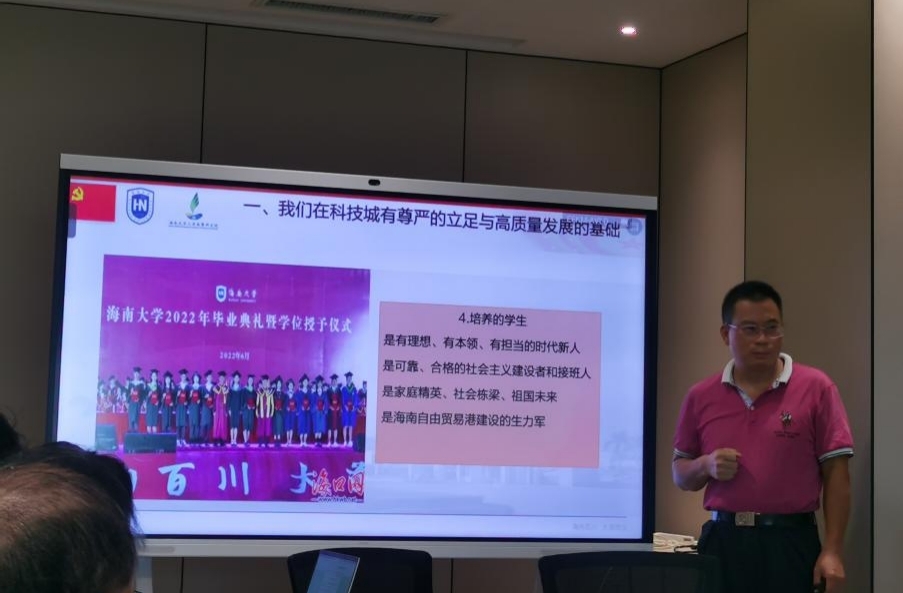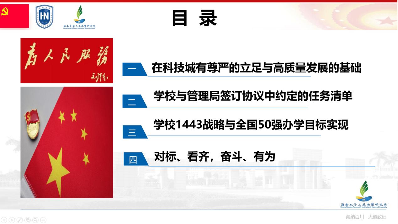 郑中兵领学了学校与三亚崖州湾科技城管理局签订的协议中约定的须完成目标与任务清单等内容。