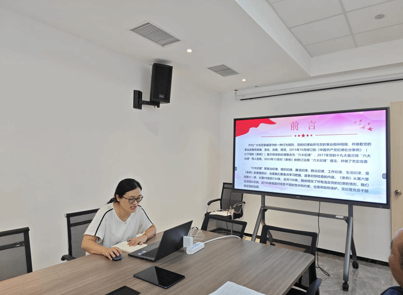党委纪检委员陈艳丽同志以《恪守“六大纪律” 筑牢思想根基》为题,为管理服务党支部党员讲授了一堂生动的党纪学习教育专题党课。