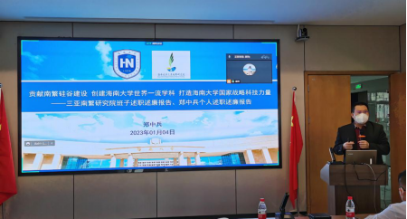 南繁院党委书记郑中兵、常务副院长杨小锋、副书记(院长)钟祥涛、副院长张洪亮分别做了个人工作报告和述职述廉报告。南繁院党委书记郑中兵主持会议。