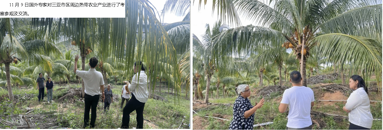 11月9日国外专家对三亚市区周边热带农业产业进行了考察参观及交流。