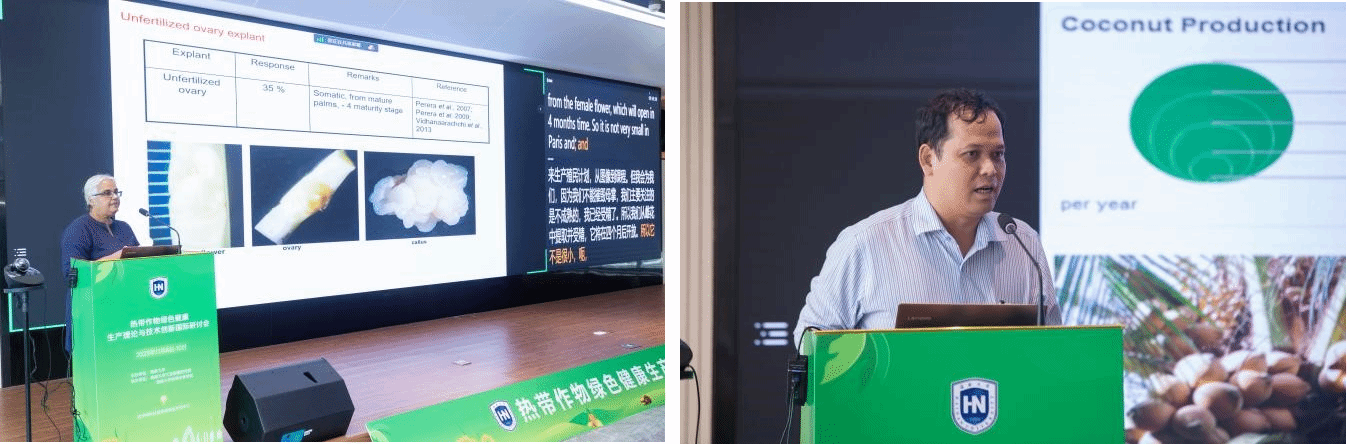 研讨会邀请了6位热区国家棕榈科领域及美国、日本绿色健康生产领域的知名专家、学者,就热带作物的栽培与管理、绿色健康生产的技术创新、病虫害管理与生物防控及椰子产业的技术创新及可持续发展做了报告分享,与会人员围绕热带农业、棕榈科热带作物科研领域的国际合作、中国热带农业产业现状、种质资源保存与利用、遗传育种新技术的研发以及创新利用等内容进行了探讨与交流。