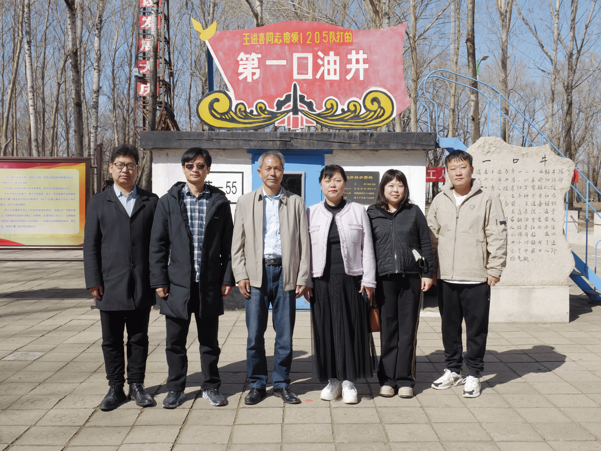 2024年4月4日晚,调研团首站来到了大庆师范学院,张平副校长非常重视本次调研活动,亲自接待并安排专人介绍大庆精神和铁人精神。2024年4月5日上午,在马克思主义学院院长马吉芬、副院长张文彬和大庆精神研究基地主任陈立勇的指引下,调研团首先参观了具有划时代意义的铁人一口井,这口井摘掉了中国石油工业落后的帽子,结束了贫油国的历史。
