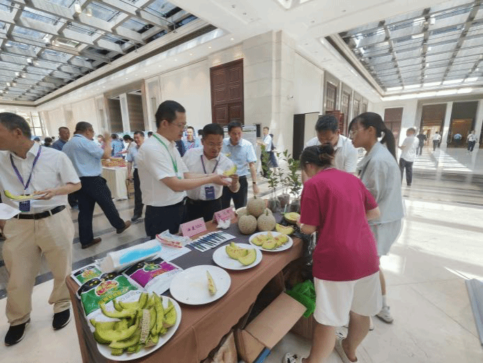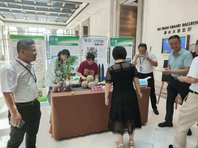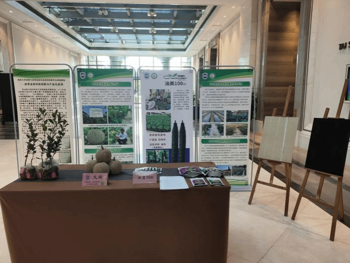 也设置了“久网”哈密瓜,“油美100”青瓜,可降解地膜,油茶的相关成果展示。