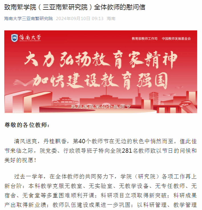910日,伴随着清晨的和煦阳光,成人网 教师们陆续步入校园,迎接他们的不仅是熟悉的校园和面孔,更有院领导班子精心准备的节日问候。