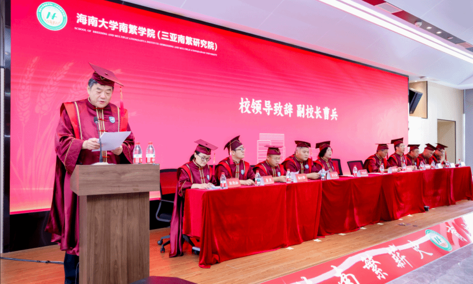 副校长曹兵、崖州湾科教园管委会主任姚天增、崖州书院党委副书记黄良颖、热带农林学院副院长王睿,南繁学院党委书记黄东益,院长李海燕,副院长杨小锋、吴友根、陈艳丽、夏志强、徐冉参加会议。典礼由陈艳丽主持。