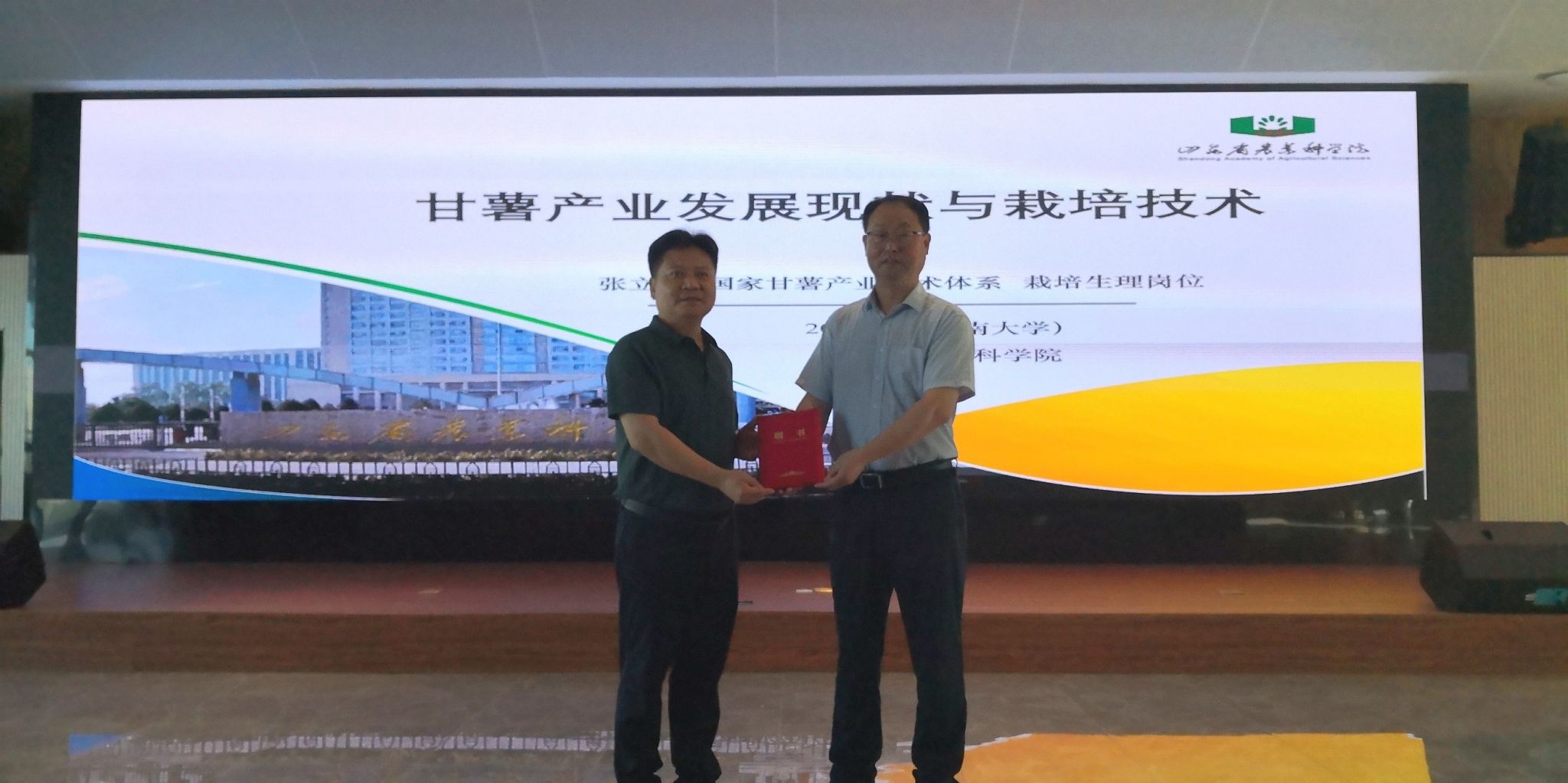 2023年11月11日,现代农业产业技术体系岗位科学家、山东省农科院副院长张立明研究员受邀亲临我院,为我院种子科学与工程专业的本科生开展了一场以“甘薯产业发展现状与栽培技术”为主题的讲座。讲座由现代农业产业技术体系菜用甘薯岗岗位科学家朱国鹏教授主持,并为张立明研究员颁发了聘书。南繁学院本科生及我院甘薯团队师生共200余人线下参加讲座。