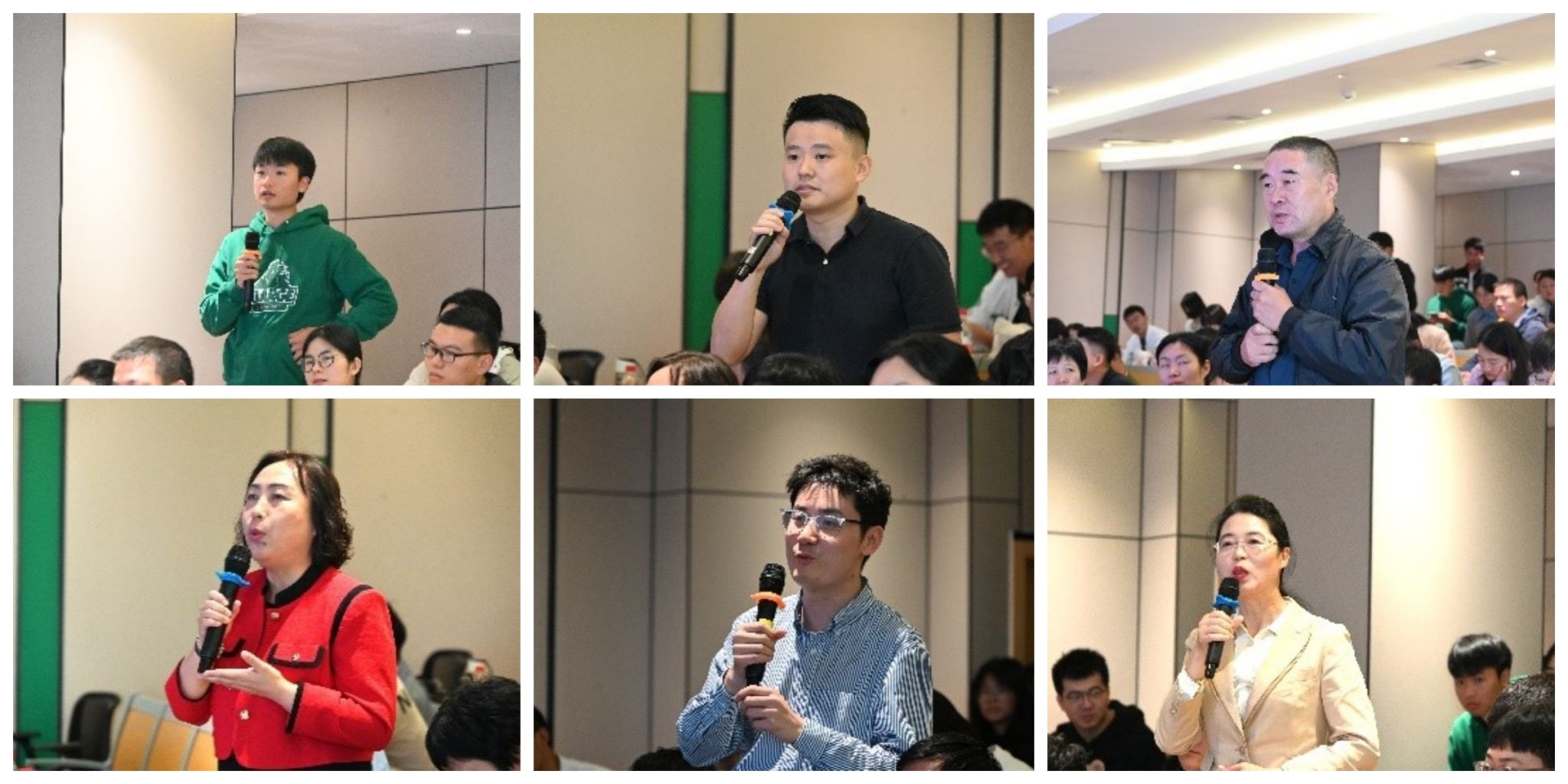 现场气氛热烈,互动活跃,与会师生结合自身的研究领域向沈其荣院士进行提问。沈教授表示,科研工作者不能盲目片面地追求所谓“国际前沿”,要面向国家发展、社会建设和人民生活的切实所需,锚定自己的研究方向,在领域内做到精专,通过解决实际问题、凝练科学问题,探寻科学现象背后的科学本质,从而推进科学和产业的进步。