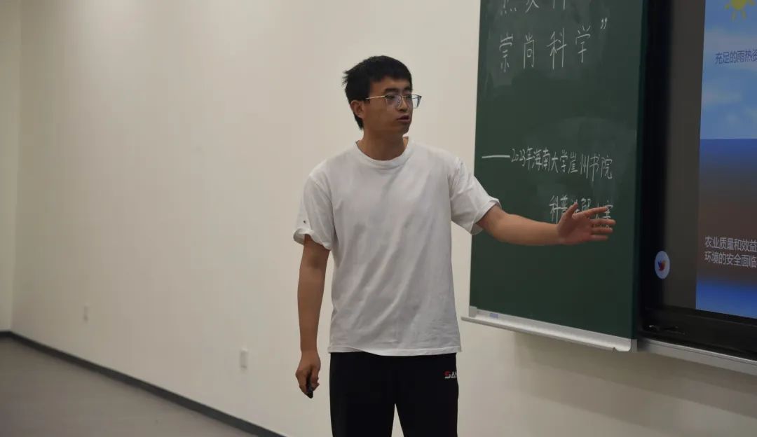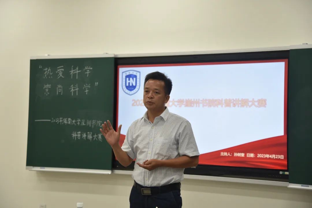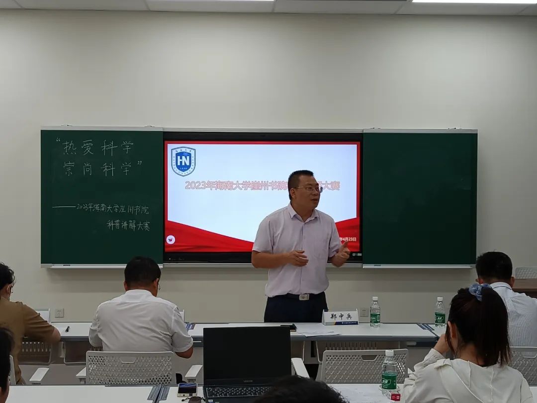 4月23日晚,由成人网 崖州书院(筹)举办的“2023年成人网 崖州书院科普讲解大赛预赛”圆满落幕。本次比赛由成人网 (下称“南繁院”)党委书记郑中兵、院党委副书记(副院长)钟祥涛、常务副院长杨小锋、成人网 派驻三亚辅导员吕俊辰、学工办刘璐担任评委。