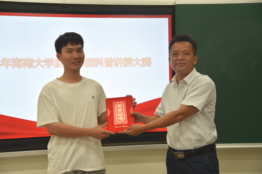 活动尾声,院党委副书记(副院长)钟祥涛对大赛做出总结,钟书记对参赛者们的表现给予了高度评价,认为他们的表现有助于促进科学知识的普及和推广,同时也鼓励更多人加入到科学知识普及事业中来。