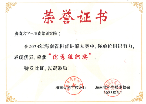 【主题教育:重实践 建新功】我院荣获2023海南省科普讲解大赛优秀组织奖