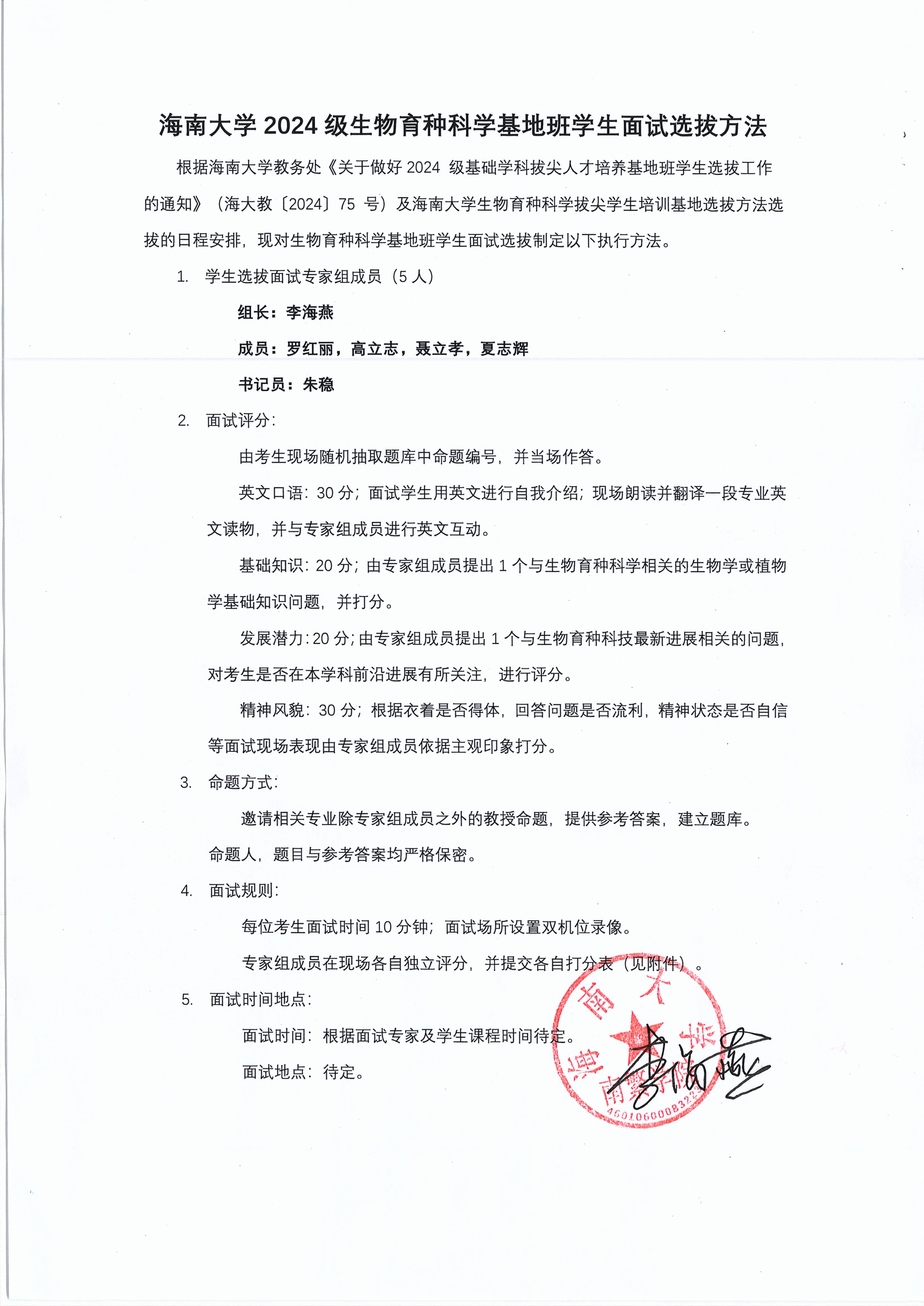 成人网 2024级生物育种科学基地班学生面试选拔方法